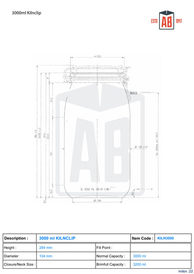 Sample Pack - 3L Clear Glass Kilnclip Jar (1 Unit)