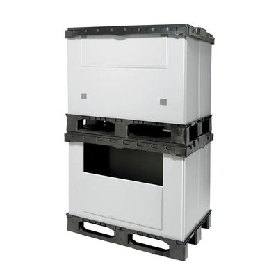 The grey sleeve combined with a black pallet and lid gives this box a professional, industrial look while ensuring optimal durability. Perfect for use in closed-loop systems, bulk handling, and automated operations.
