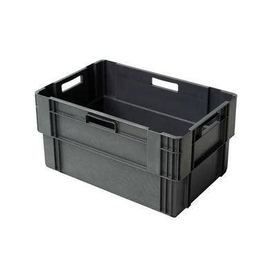 This 60-litre grey stack and nest box is a heavy-duty storage and transport solution perfect for industrial, warehouse, and logistics environments. With its nestable and stackable rotary design, it helps maximise space when not in use, offering efficiency in both storage and return logistics.
